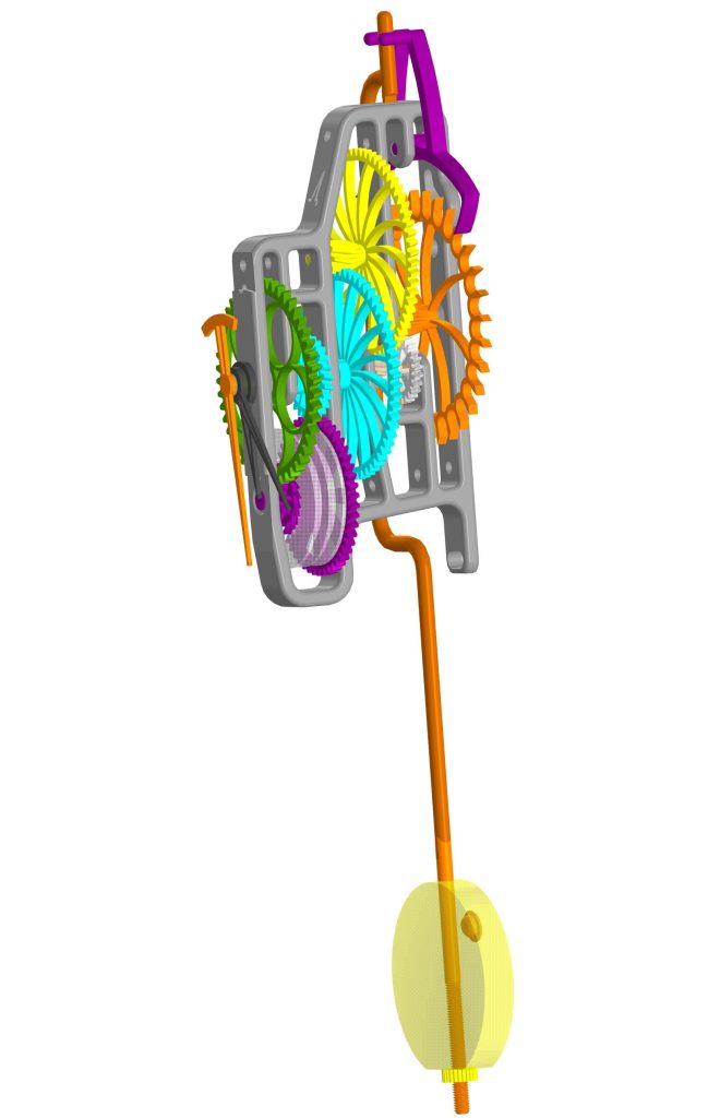 - для расширенной версии проделываем то же самое с соответствующим комплектом секундной и анкерной шестеренки. Оставляем его, т.к. запуск версии с длинным маятником проще;